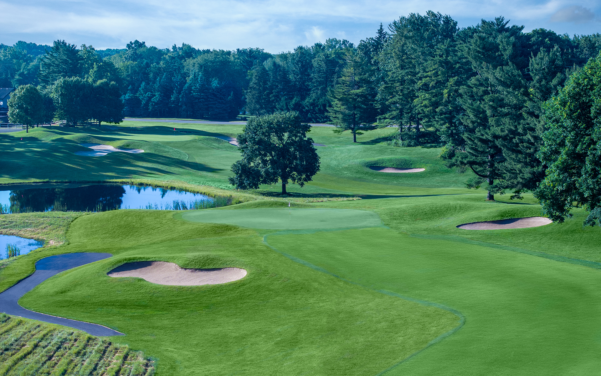 At Oak Pointe, Members can choose from two spectacular courses designed to beckon golfers of all skill levels. The more traditional Jerry Matthews-designed course weaves through rolling hills and puts a premium on accuracy. The beautiful Honors Course, designed by the renowned Arthur Hills, showcases the natural beauty of the area as you play past lakes and wetlands and provides a challenge for all golfers.